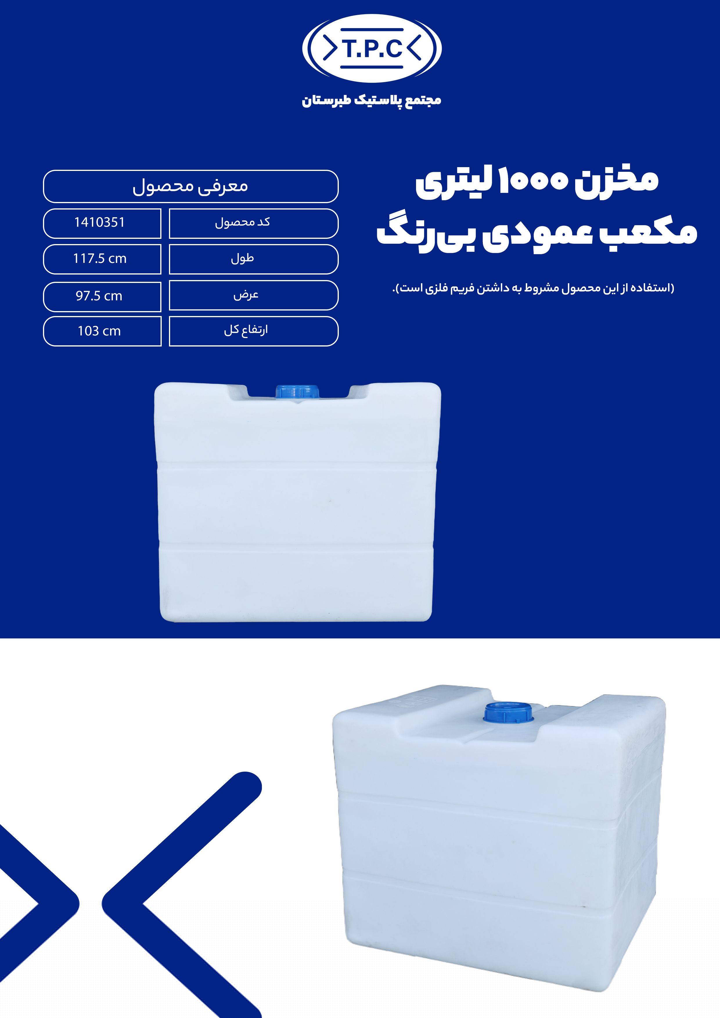| 1410351 | مخزن ibc مکعب عمودی بیرنگ | 1000 | 117.5 | 97.5 | 103 | دانلود فایل | |